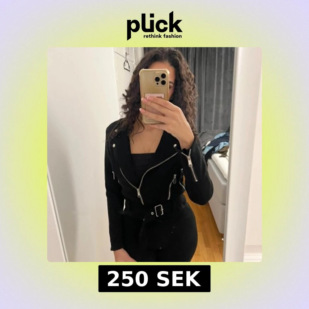Svart bikerjacka från NLY Trend med silvriga dragkedjor, knappar och bälte i midjan. Jackan har croppad passform, klassisk krage och långa ärmar. Perfekt för dig som vill ha en edgy och stilren look. Den ENDA defekten jackan har är att den har ett hål i fickan som gör så att små saker som läppennor hamnar i insidan av jackan, men det är lätt att ta ut! Annars är materialet super bra och alla knappar och dragkedjor fungerar som de ska! Den är en 34 men puss mig dom när 36