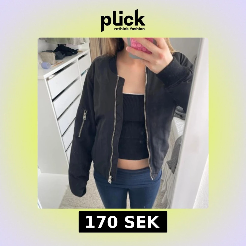En svart bomberjacka med silvriga detaljer! Perfekt för en cool och avslappnad stil.