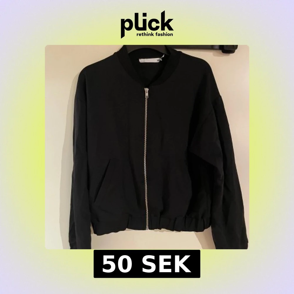 Svart bomberjacka från 157 med klassisk ribbad krage och muddar. Jackan har en silverfärgad dragkedja framtill, två sidofickor och en loose passform. Materialet är mjukt och känns som bomull, perfekt för en chill och stilren look.
