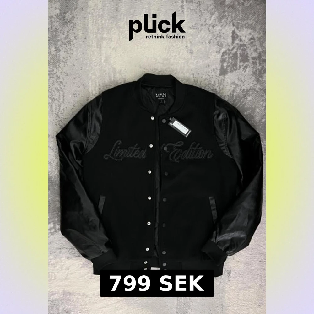 Svart bomberjacka med broderad text 'Limited Edition' på bröstet. Jackan har blanka ärmar i syntetmaterial och quiltat foder på insidan. Stängs med knappar framtill och har ribbade muddar vid hals, ärmslut och nederkant. Perfekt för dig som vill ha en clean och stilren look.