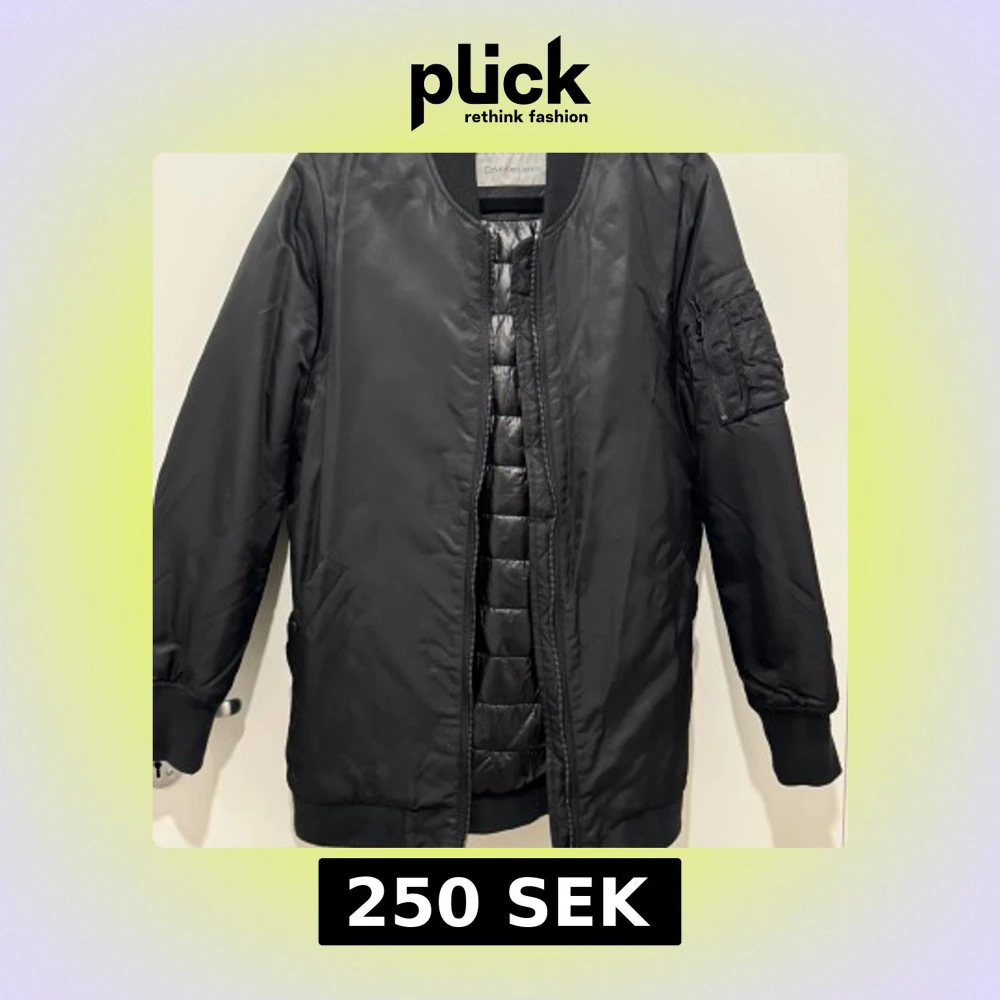 Snygg svart bomberjacka från Calvin Klein med dragkedja och ribbade muddar. Jackan har en praktisk ficka med dragkedja på ärmen och ett diskret broderat märke på ryggen. Perfekt för en stilren look.