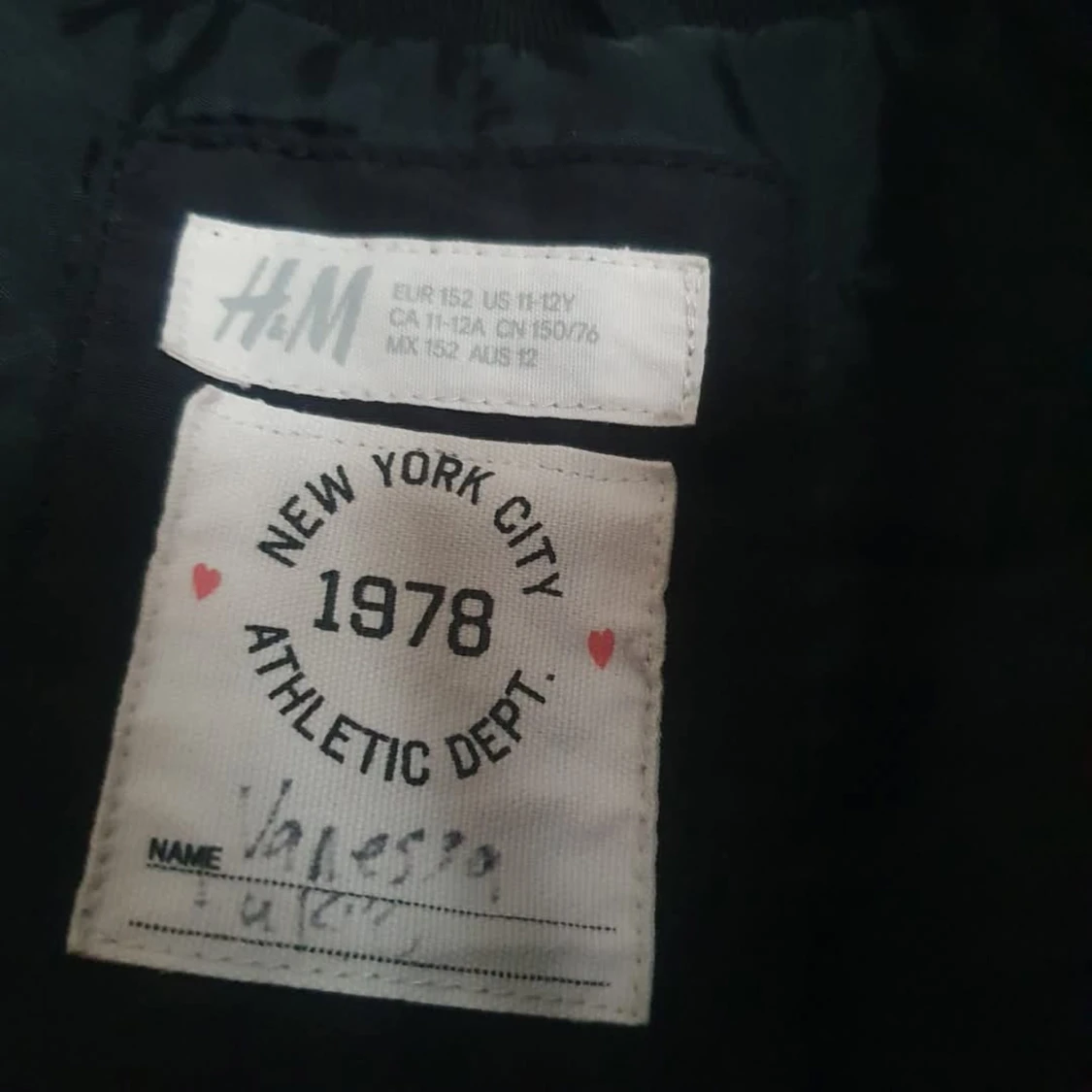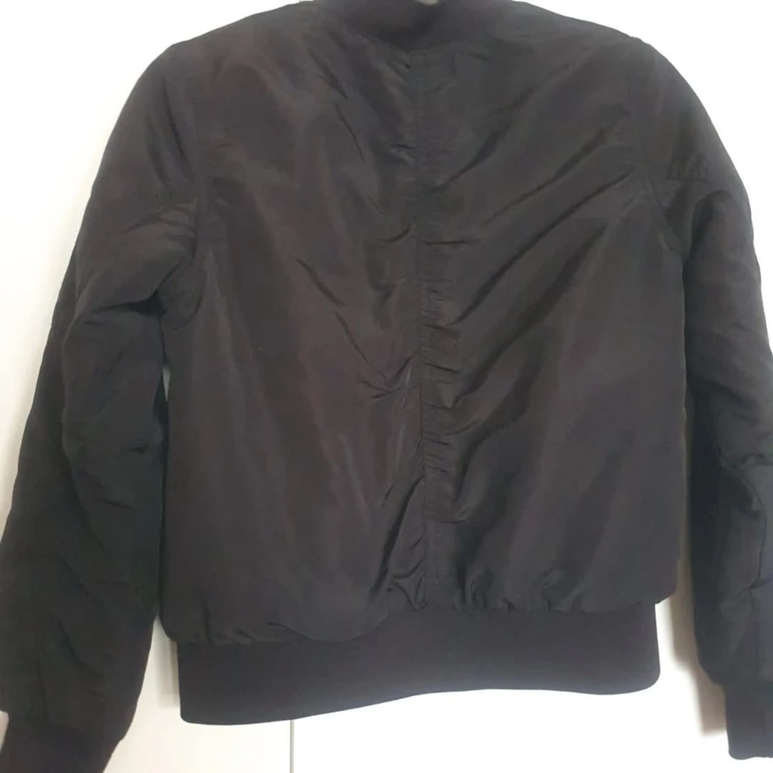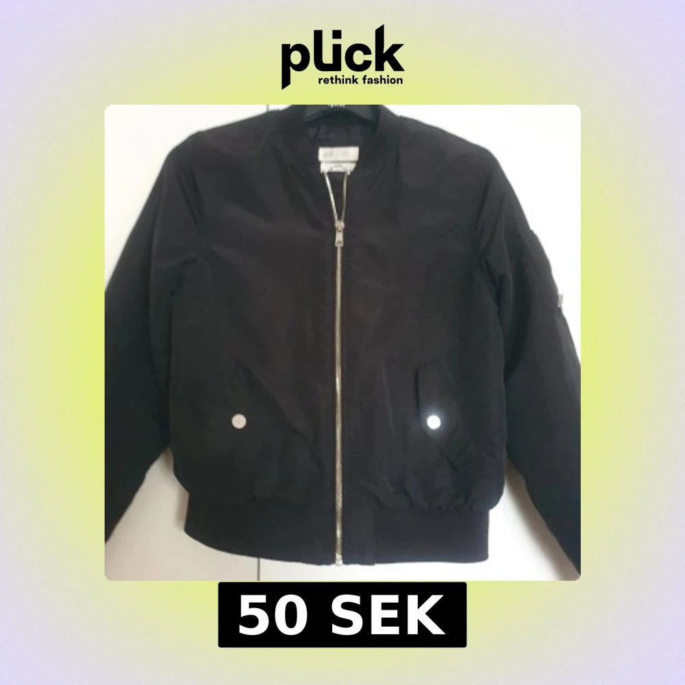 Säljer en svart bomberjacka från H&M med dragkedja framtill och två fickor med knappar. Jackan har en klassisk bomberstil med ribbade muddar vid ärmslut och nederkant. Perfekt för en cool och avslappnad look.