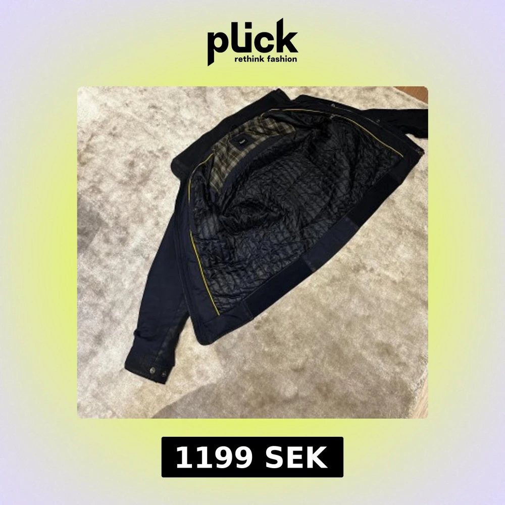 Snygg svart bomberjacka från Hugo Boss med quiltat foder och rutigt innerfoder i grått och gult. Jackan har dragkedja, knappar vid ärmslut och detaljer i gult längs insidan. Perfekt för dig som gillar stilrena och klassiska jackor med modern touch.