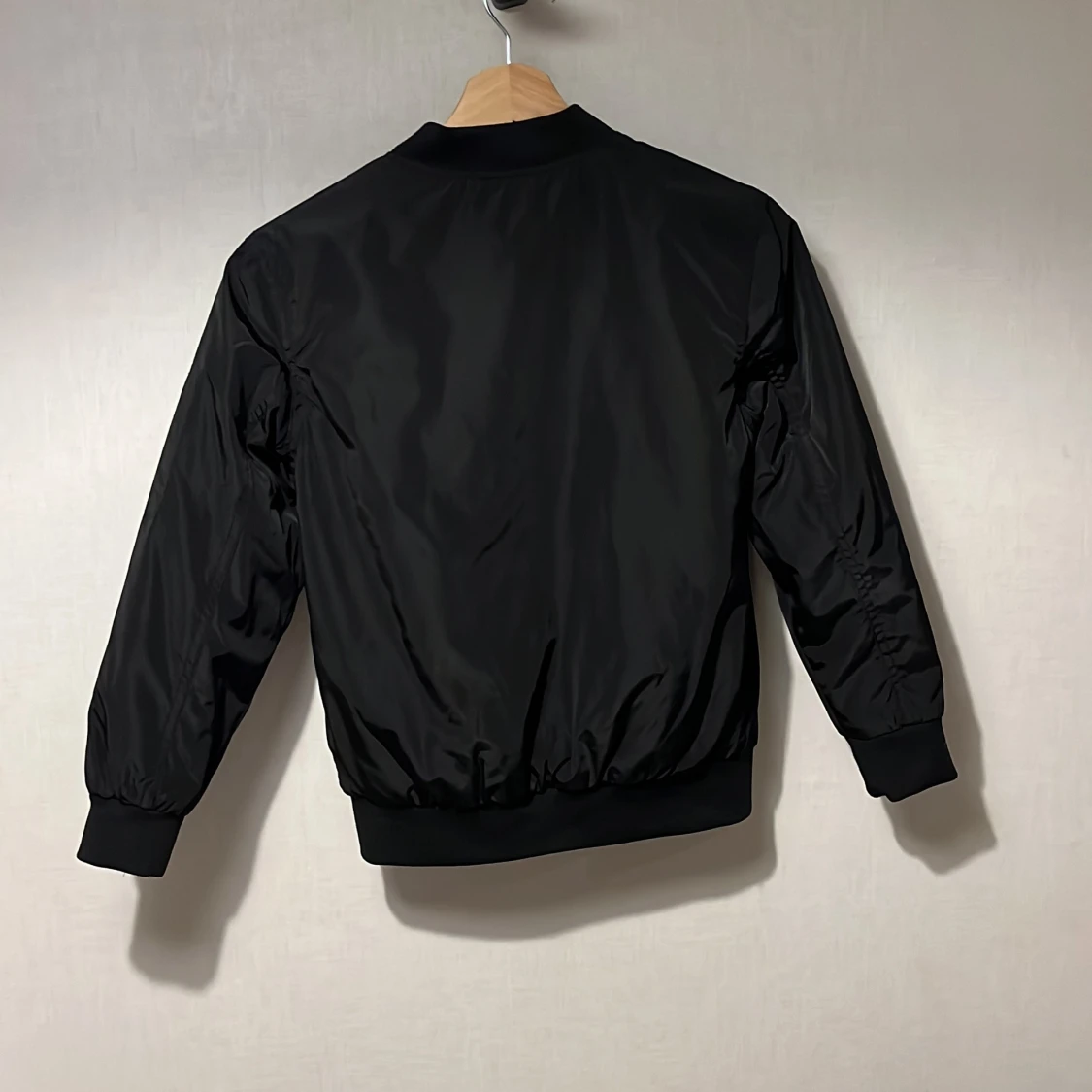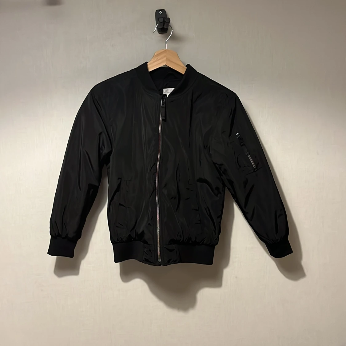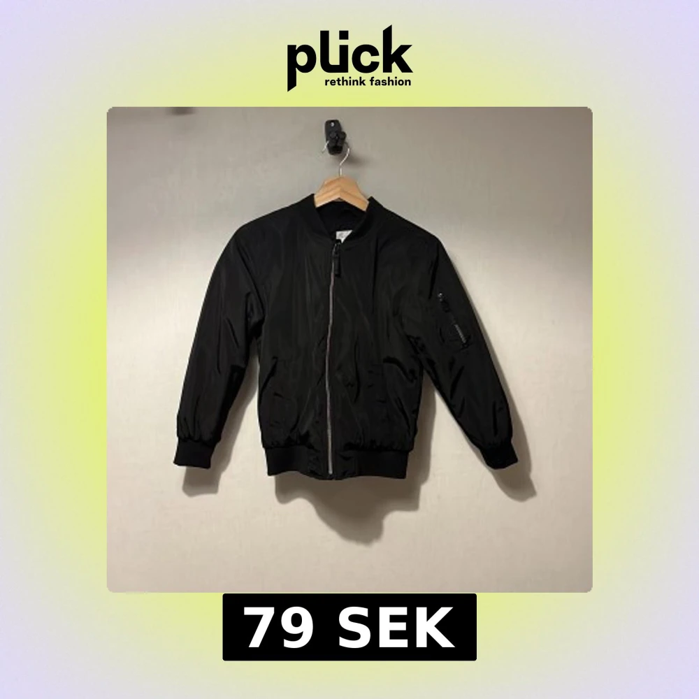 Svart bomberjacka från Lindex med klassisk ribbad krage och muddar. Jackan har dragkedja framtill och en ficka med dragkedja på ärmen. Tillverkad i vattenavvisande syntetmaterial, perfekt för blåsiga dagar. Enkel och stilren design som funkar till allt.