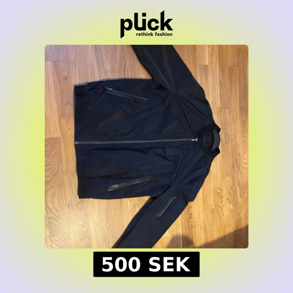 Snygg svart bomberjacka från Zara Man i storlek M. Jackan har flera dragkedjeförsedda fickor, ribbade muddar och klassisk bomberkrage. Tillverkad i ett lätt syntetmaterial som passar perfekt för vår och höst. Enkel och stilren design som funkar till det mesta.