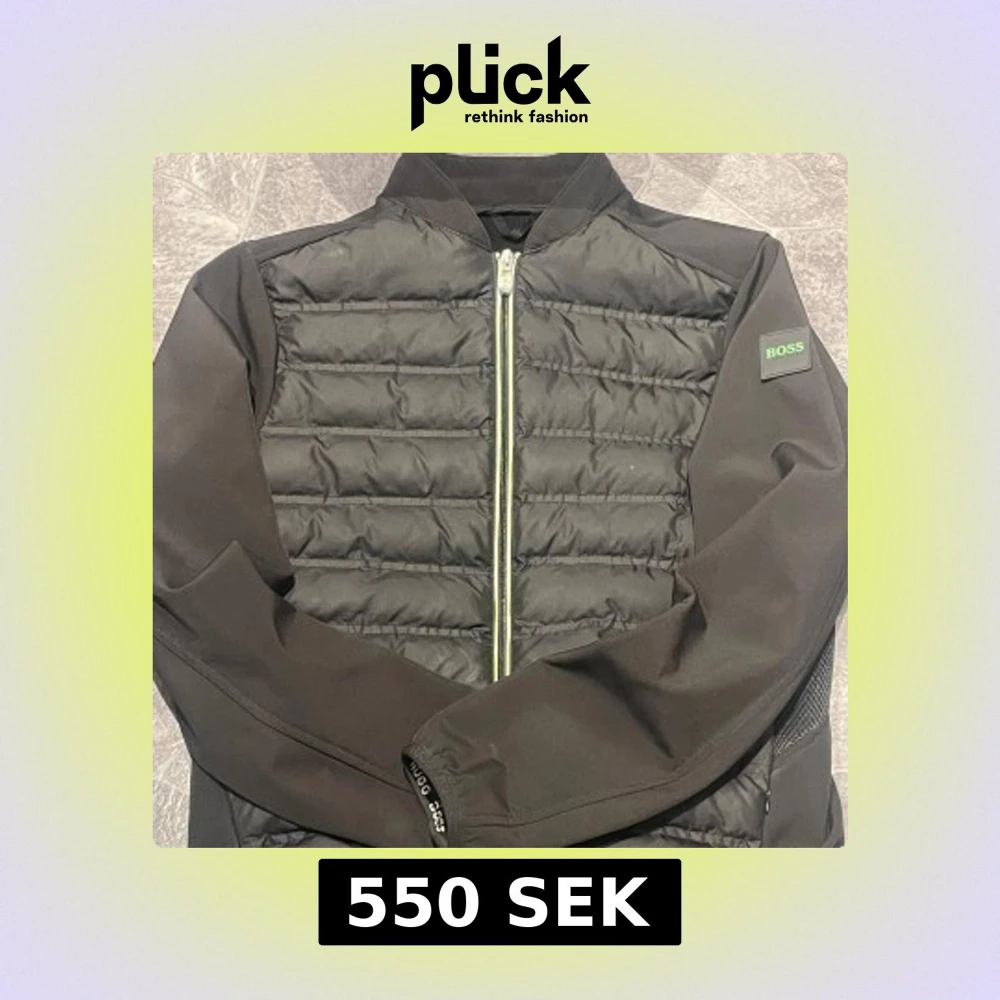 Svart cardigan från BOSS med quiltade paneler framtill och släta ärmar. Jackan har dragkedja och en BOSS-logga på ärmen. Perfekt för kyliga sommar dagar och har en modern, sportig look.