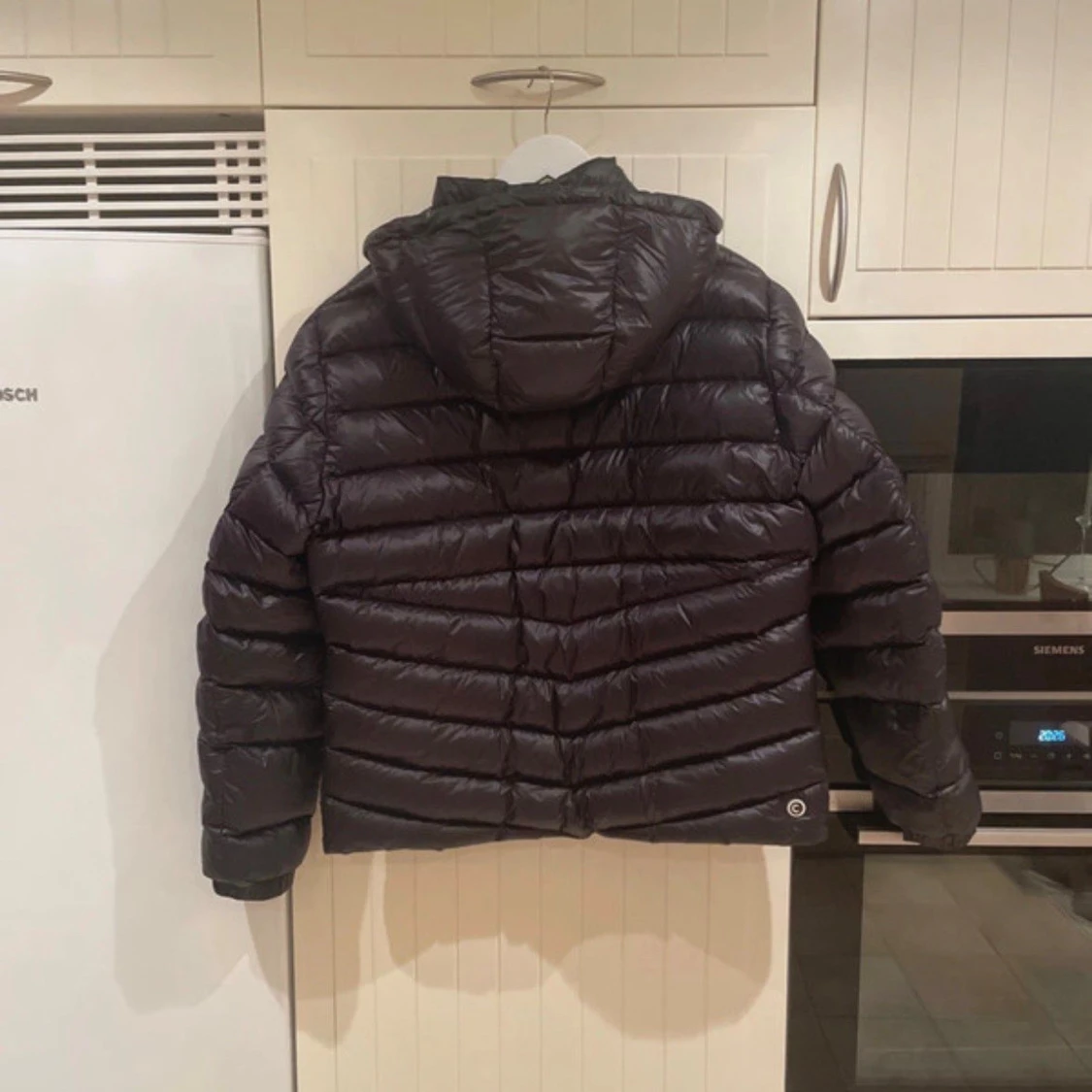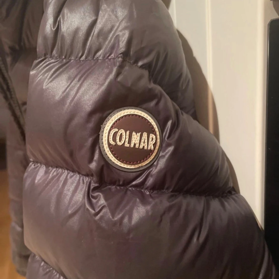 Säljer en svart pufferjacka från Colmar Originals med huva och dragkedja framtill. Jackan har ett stilrent, quiltat mönster och logotyp på ärmen. Perfekt för kalla dagar och har en snygg, modern look som passar till streetwear. Men den är liten i storleken