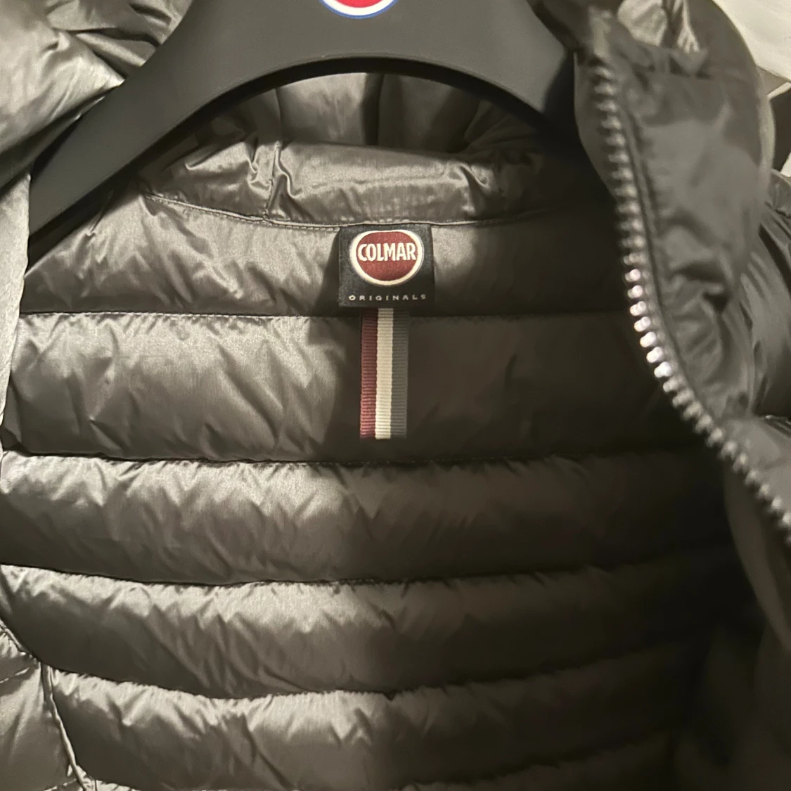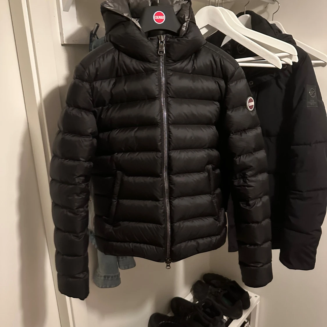 Säljer en svart pufferjacka från Colmar med huva och dragkedja framtill. Jackan är vadderad och ser helt ny ut. Endast använd i 3 månader. Säljer pga att jag ej använder. Galje medföljer. Äkta såklart❤️