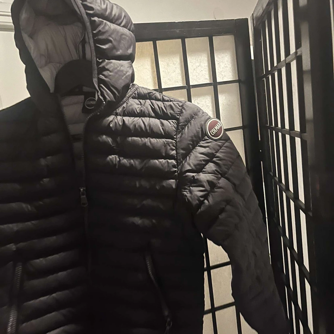 Säljer en svart pufferjacka från Colmar Originals med huva och dragkedja. Jackan har quiltad design, två fickor med dragkedja och Colmar-logga på ärmen. Perfekt för dig som vill ha en stilren och varm jacka med snygg passform. Storlek 10y 142 cm