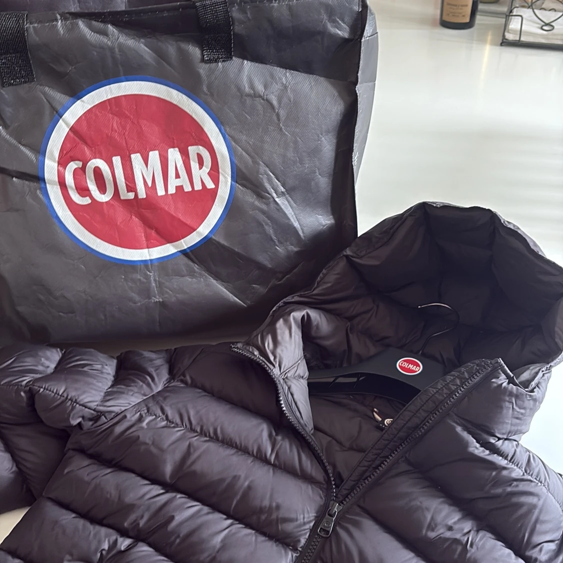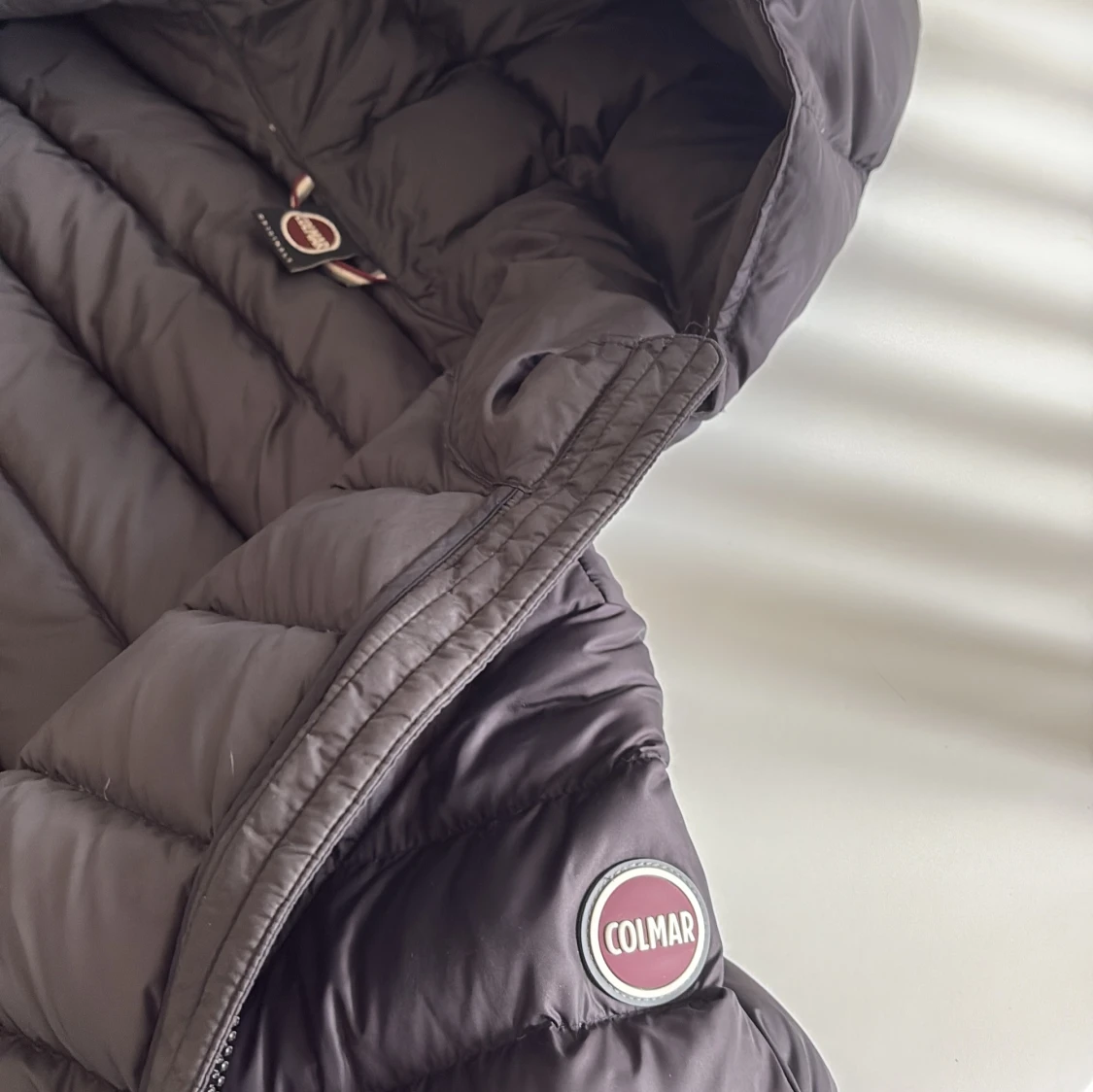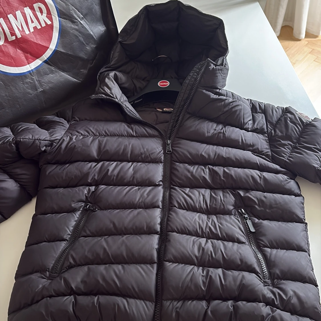 Säljer en svart pufferjacka från Colmar med huva och två dragkedjeförsedda fickor för 1999kr. Jackan har ett stilrent, quiltat mönster och klassisk logga på ärmen. Perfekt för kalla dagar och riktigt snygg.