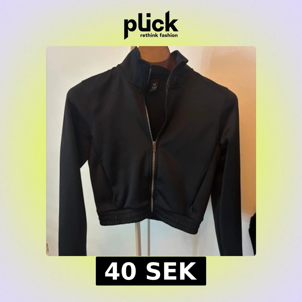 Svart croppad jacka från SOC med dragkedja framtill och hög krage. Jackan har långa ärmar, elastisk nederkant och två fickor med dragkedja.