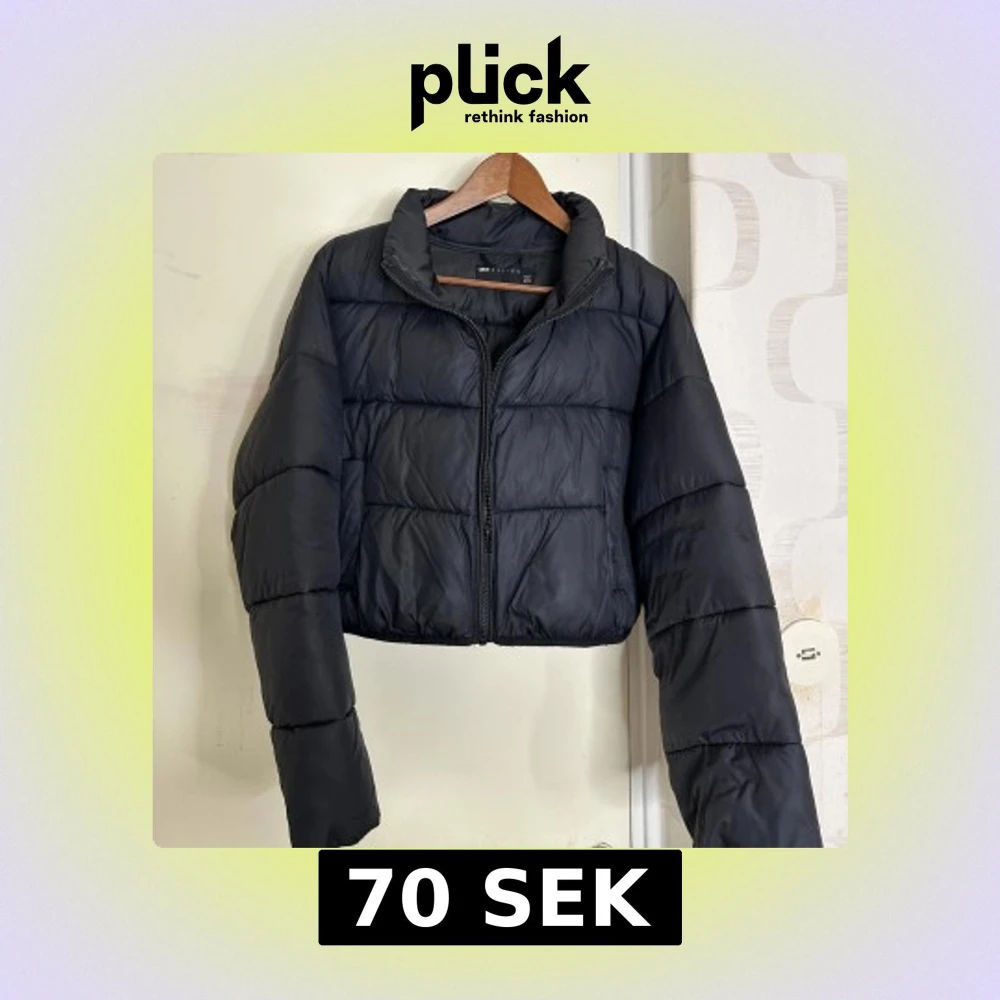 Säljer en svart croppad pufferjacka från ASOS DESIGN. Jackan har en dragkedja framtill och långa ärmar 🖤