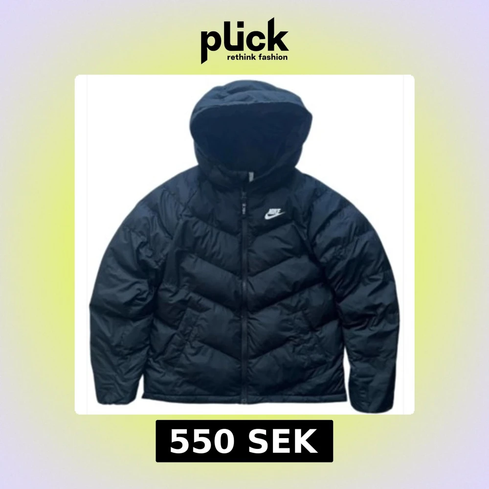 Svart Nike pufferjacka i storlek 158–170 cm (motsvarar XL i barnstorlek eller XS i vuxenstorlek). Säljes då jackan inte längre används. Jackan är i nyskick, utan skador eller märken 😃Nypris: 1399 kr, mitt pris 550kr 🤩.