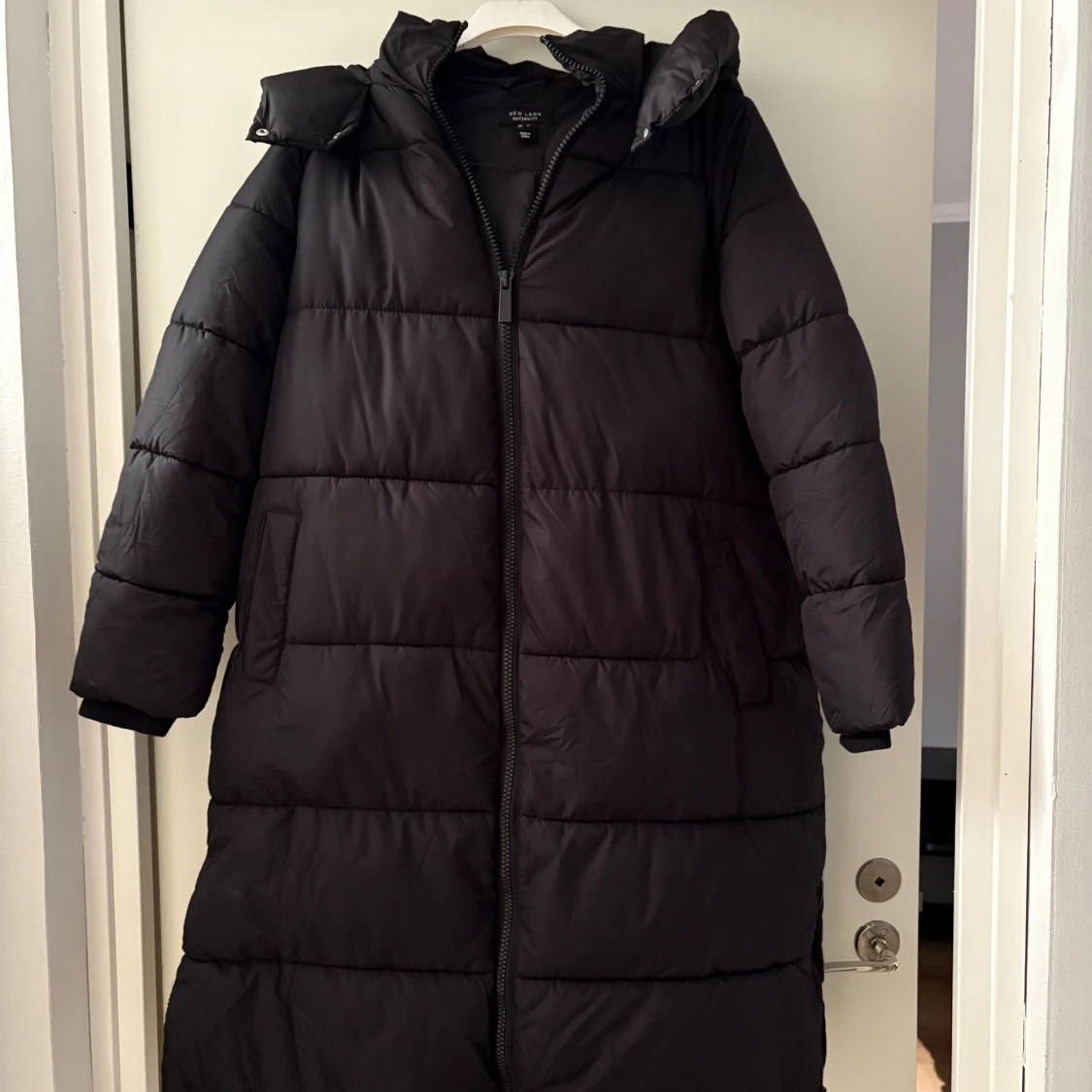 Säljer en svart dunjacka från asos i storlek SE 4. Jackan är perfekt för kalla vinterdagar med sin långa design och vadderade stil. Den har en dragkedja framtill och en hög krage för extra värme. Perfekt för att hålla sig varm och snygg under vintern! 🖤