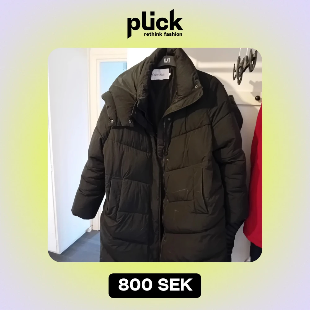 Säljer en svart dunjacka från Calvin Klein i mycket bra skick. Den är perfekt för kalla vinterdagar med sin tjocka vaddering och långa ärmar. Jackan har en dragkedja framtill och en hög krage för extra värme. Perfekt för både vardag och festliga tillfällen!