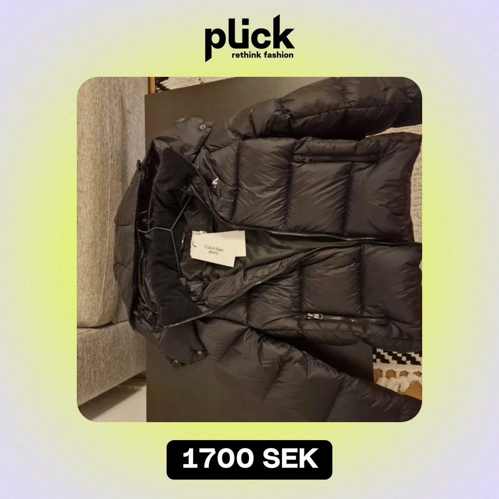 Säljer en snygg svart dunjacka från Calvin Klein i nytt skick. Jackan har en pufferstil med dragkedja och hög krage. Perfekt för kalla vinterdagar och håller dig varm och stilren. Aldrig använt, helt ny! Köpt för 2599