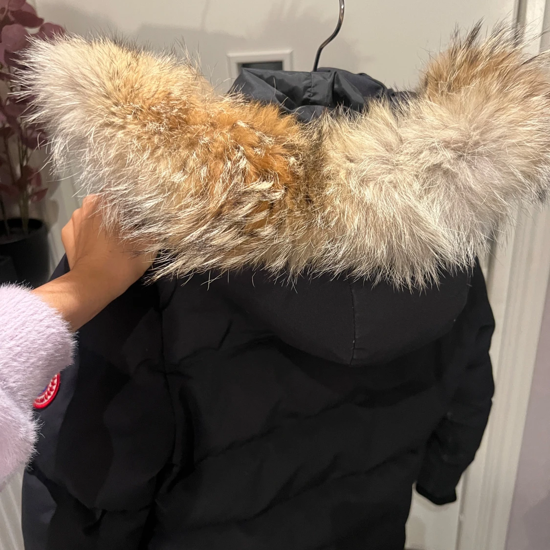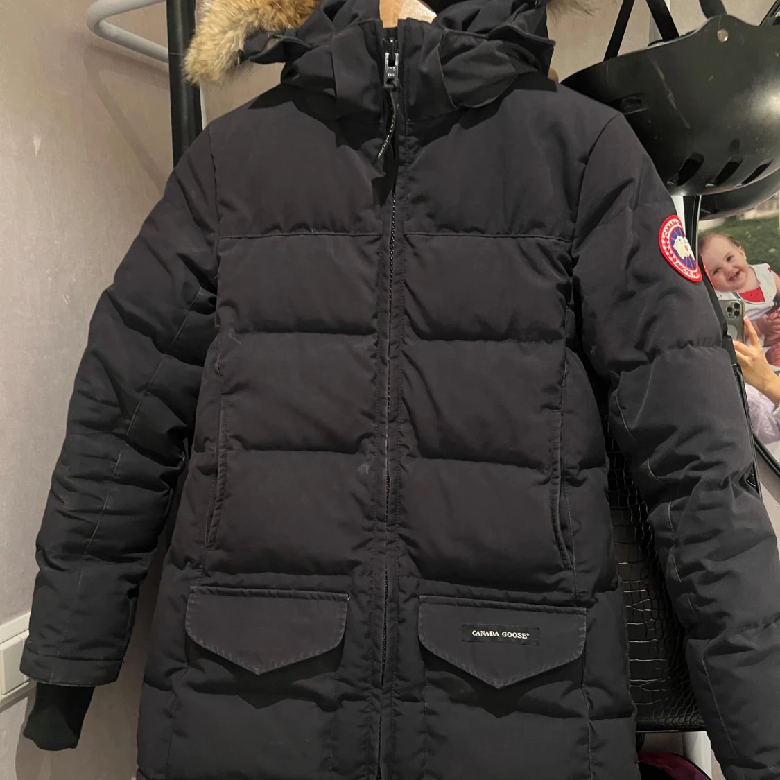 Säljer en svart Canada Goose dunjacka i mycket bra skick. Jackan har en fluffig pälsdetalj på huvan och är perfekt för kalla vinterdagar. Den har långa ärmar och praktiska fickor framtill. Passar perfekt för vinterns alla äventyr! ❄️