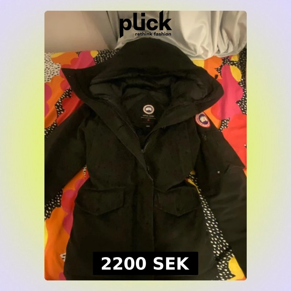 Säljer en svart dunjacka från Canada Goose med huva och snygg pälskant. Jackan har dragkedja, stora fickor framtill och klassisk patch på ärmen. Perfekt för kalla dagar och riktigt stilren look. PRIS KAN DISKUTERAS!!!!