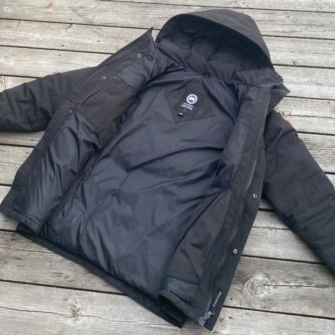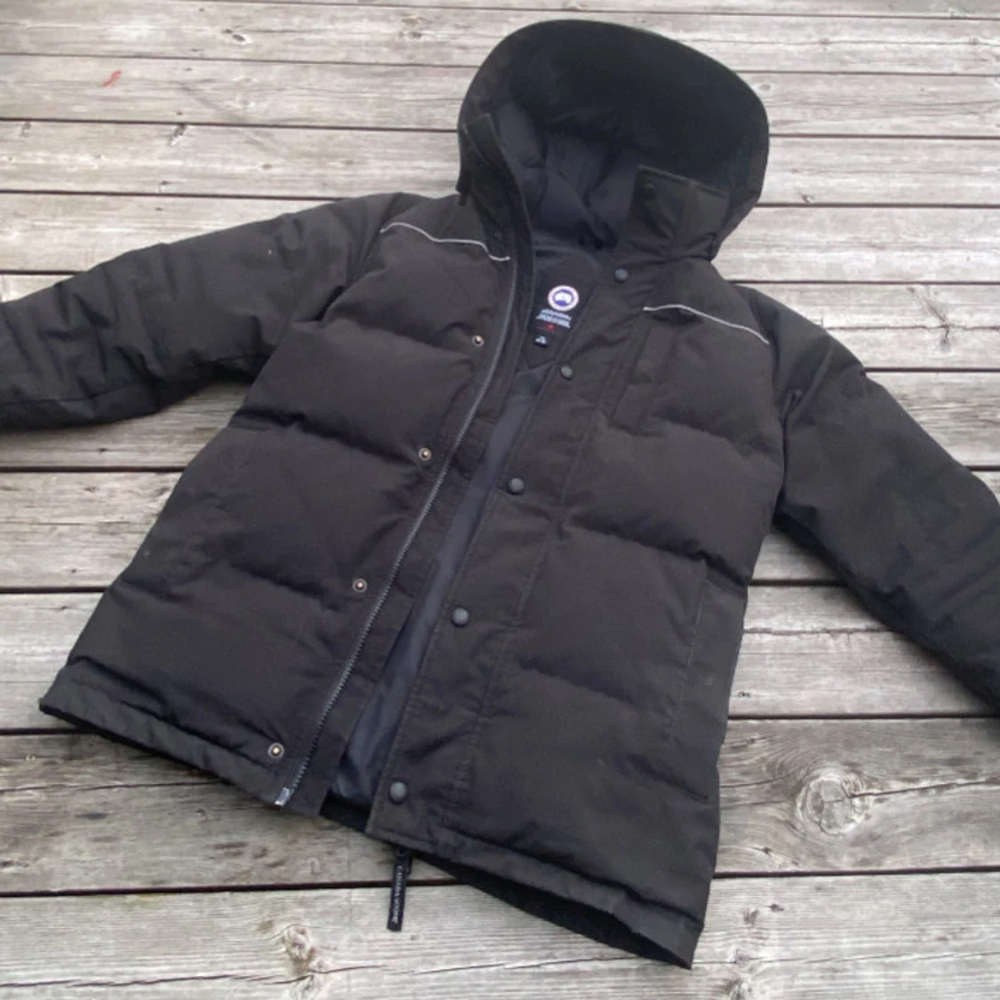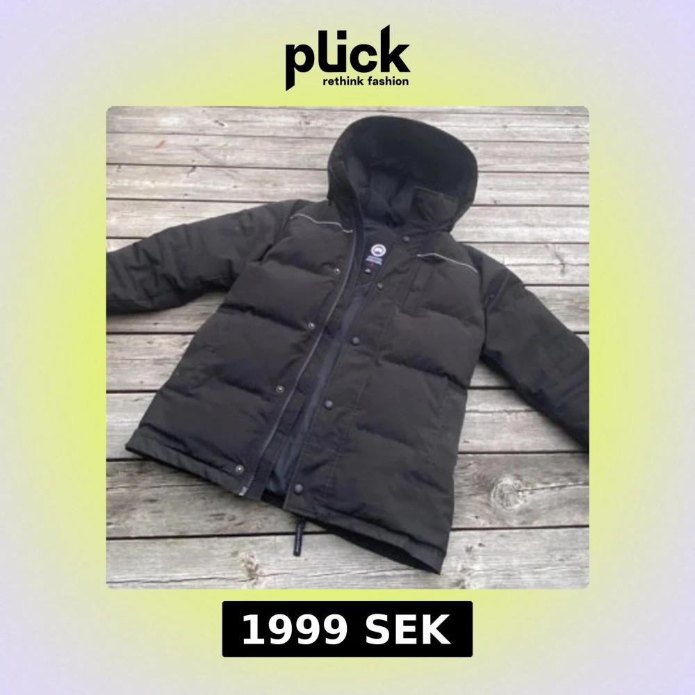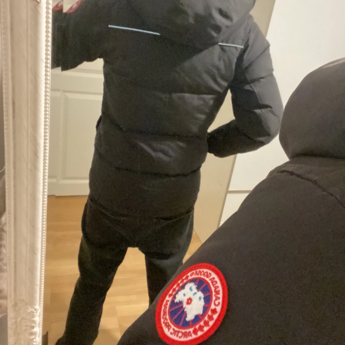 Säljer en svart dunjacka från Canada Goose med sick 6-10👌🏼 äkta jacka barn modell passar i längd runt 165 till 176