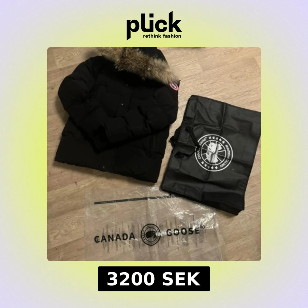Säljer en svart dunjacka från Canada Goose med pälskantad huva. Jackan har långa ärmar och knappar framtill. Perfekt för kalla vinterdagar. Skämms inte att fråga om fler bilder!, Pris kan diskuteras. allt med följer!