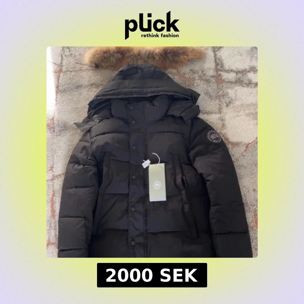 Svart dunjacka från Canada Goose med stor huva och snygg pälsdetalj. Jackan har flera fickor framtill, tryckknappar och dragkedja. Hängugglan är trasig annars perfekt Märkespatch på ärmen och insida i nylon. Perfekt för kalla vinterdagar och riktigt stilren look. Skriv om ni vill ha fler bilder tex på ugglan