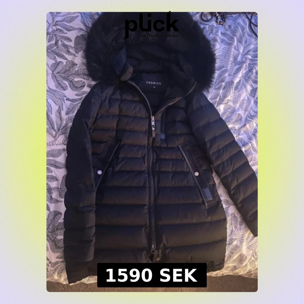 Säljer en svart dunjacka från Cedrico i storlek S. Jackan har en fluffig huva med pälsdetalj, långa ärmar och två fickor med knappstängning. Den är quiltad och har dragkedja framtill. Perfekt för kalla dagar och har en snygg, stilren look.