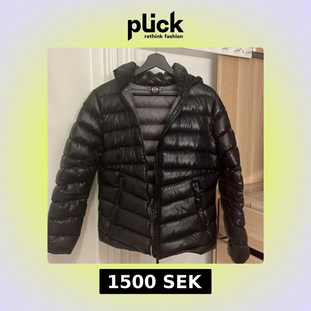 Snygg svart dunjacka från Colmar med huva och dragkedja. Jackan har en pufferdesign som ger en modern look, den ger en fin och femenin form. Denna jacka fungerar perfekt både på svalare vårdagar, hösten och vintern!! Skulle säga att den motsvarar small/medium!! Därav är jag öppen för byten till xs eller s!!Den har ett jättelitet håll som går lätt att fixa Inköpspris: 4500 kr
