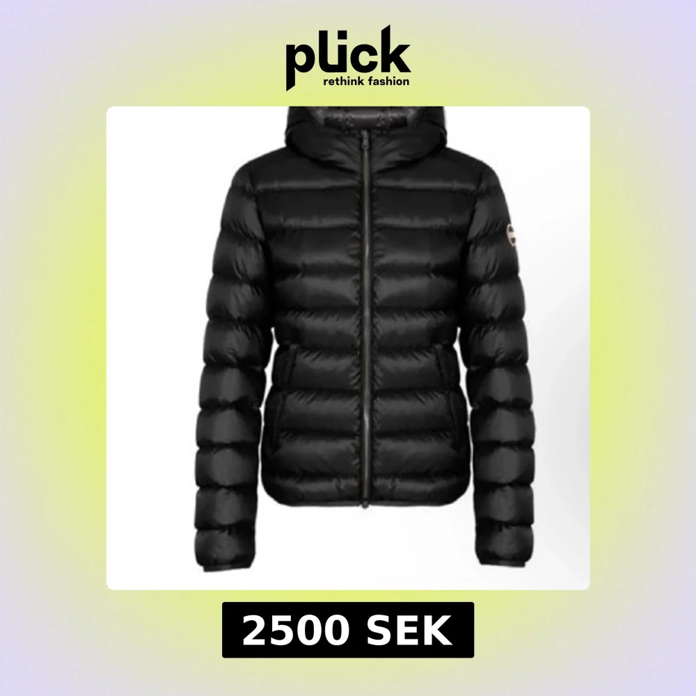 Säljer en svart dunjacka från Colmar med huva och snyggt quiltad design. Jackan har dragkedja framtill, två sidofickor med dragkedja och ett Colmar-märke på ärmen. Perfekt för kalla dagar och har en clean, modern look.