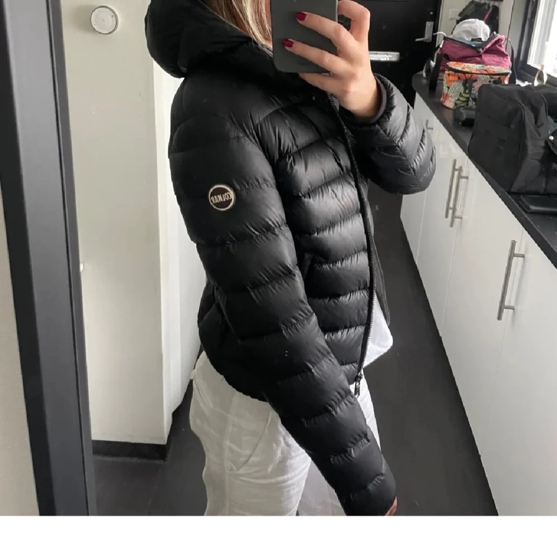 Snygg svart dunjacka från Colmar med huva och dragkedja framtill. Prefekt nu när de börjar bli kallt ute! Lånade bilder men de är bara att fråga om mer bilder om ni vill💞💞