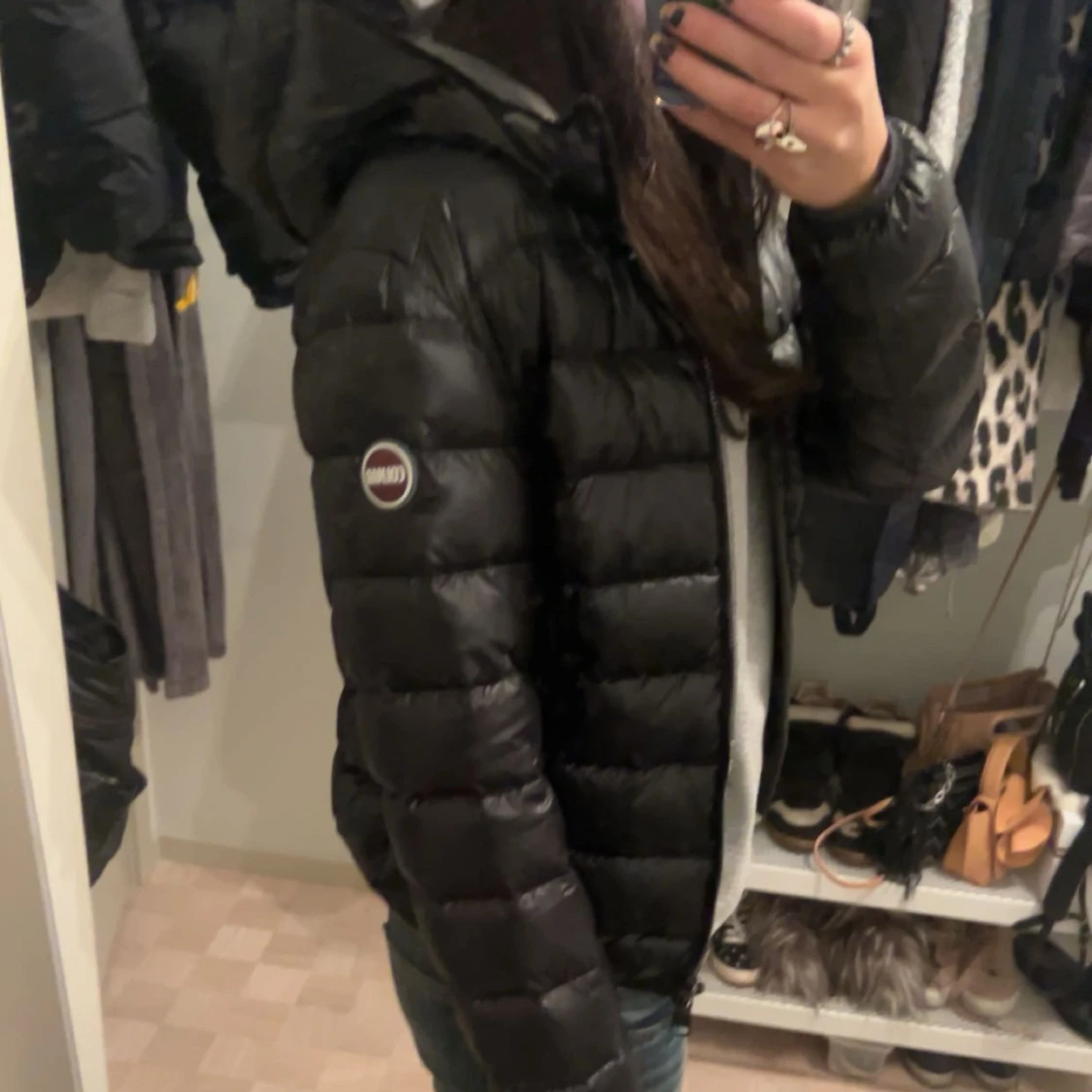 Säljer en snygg och varm svart dunjacka från Colmar. Jackan har en dragkedja framtill och är perfekt för kalla vinterdagar. Den är i mycket bra skick och har en normal passform. Perfekt för både vardag och vinteraktiviteter! ❄️
