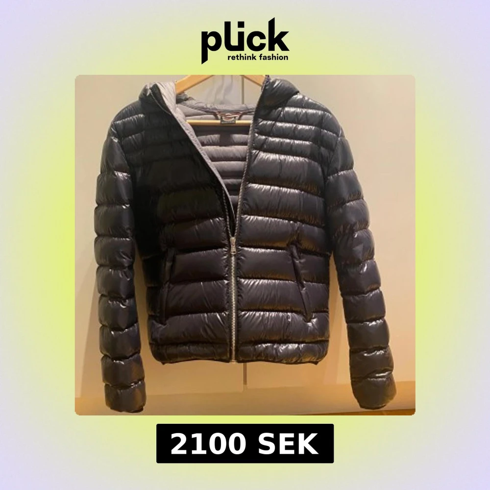 Snygg svart pufferjacka från Colmar med glansig finish och huva. Jackan har quiltad design, dragkedja framtill och två fickor. Fylld med naturligt dun för extra värme. Perfekt för kalla dagar och riktigt stilren look. Den är i italiensk storlek 44 men jag skulle säga att den sitter som en XS till S! Jackan har ett väldigt väldigt litet hål vid ärmen men det syns knappt! annars inga andra defekter! 🥰