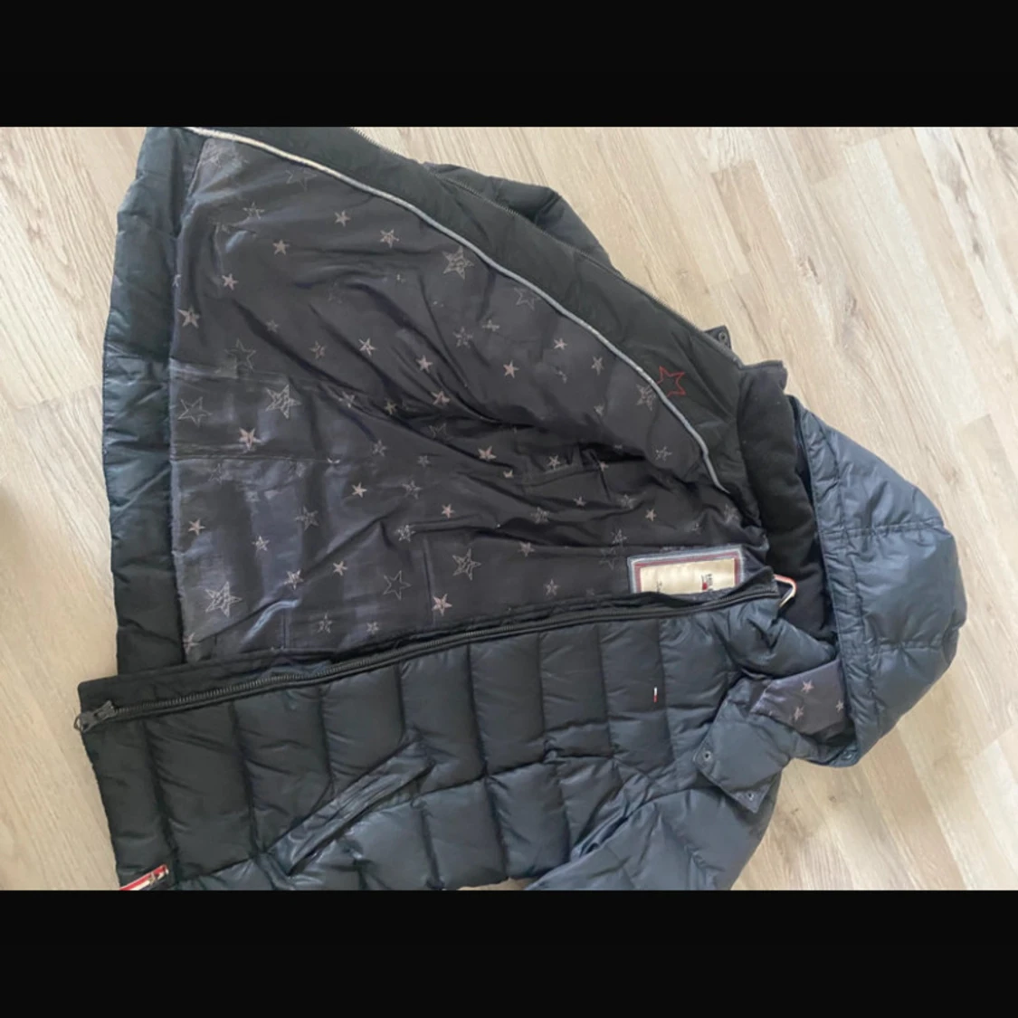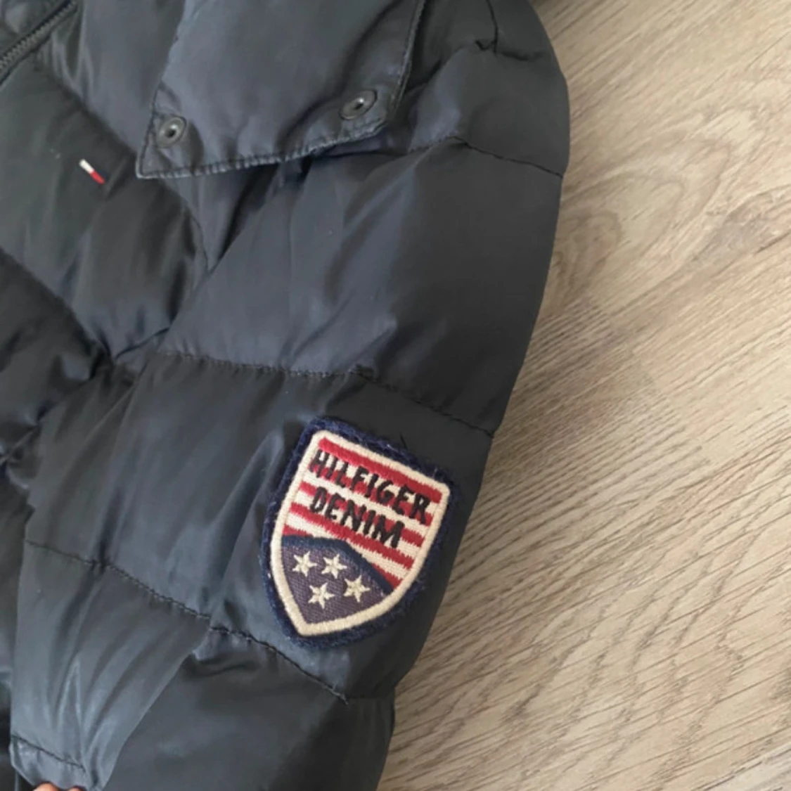 Säljer en svart dunjacka från Tommy hillfiger med huva och dragkedja framtill. Jackan har quiltad design och två fickor med dragkedja. Perfekt för kyligare dagar och har en snygg, sportig look.