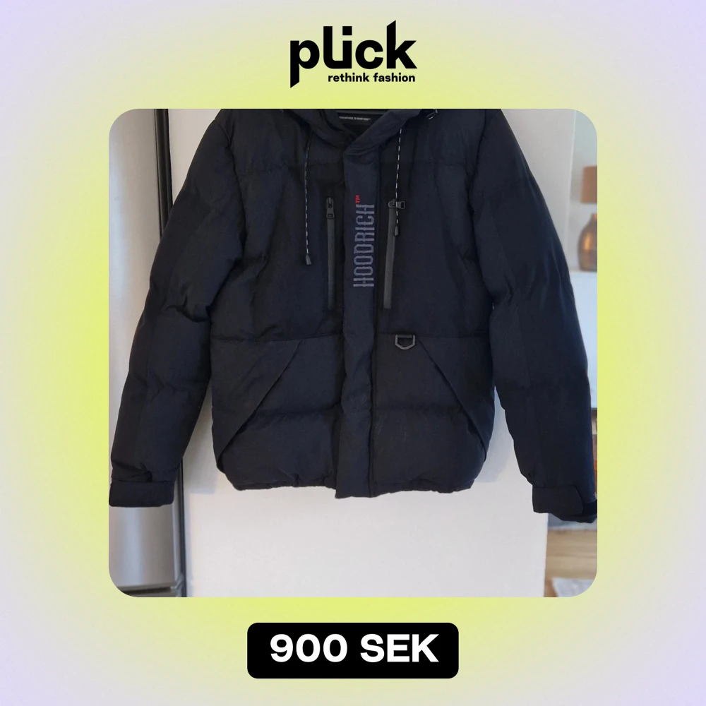 Säljer en svart dunjacka från Hoodrich i mycket bra skick. Jackan har en cool streetwear-stil med tryck på ryggen och insidan. Den är långärmad och har en dragkedja framtill. Perfekt för höst och vinter!