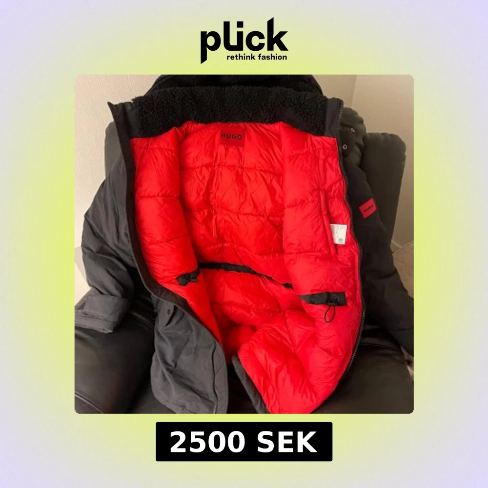 Säljer en svart från Hugo med en iögonfallande röd insida. Jackan har en dragkedja och är långärmad, perfekt för kalla dagar. Den har en quiltad design som ger extra värme och stil. Passar utmärkt för vintersäsongen.