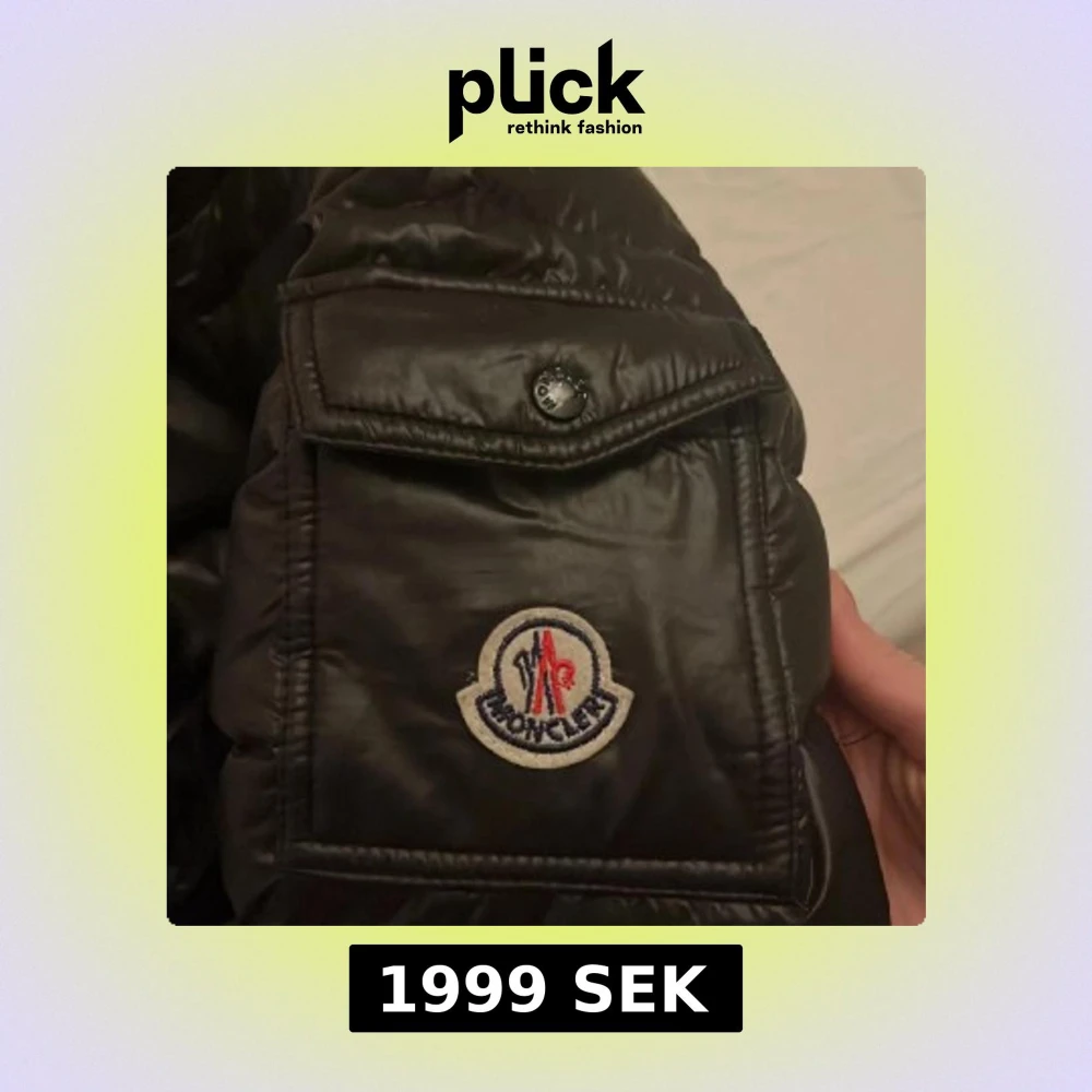 Säljer en snygg svart dunjacka från Moncler. Jackan har en quiltad design med en praktisk huva och Monclers logotyp på ärmen. Perfekt för kyliga dagar och håller dig varm och stilren. 🖤Inge kvitto köpt på Plick inga fläckar eller så heller❤️