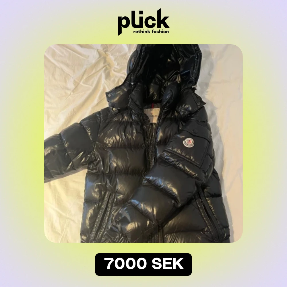 En svart Maya dunjacka från Moncler med huva och dragkedja. Jackan har en glansig yta och är quiltad för extra värme. Perfekt för kalla vinterdagar. kvitto och prislapp finns även. och sedan en påse om man vill ha med den, men de är ganska sliten. en liten skavank och de är att serieteckningen lossnat lite på undersidan men inget man märker av