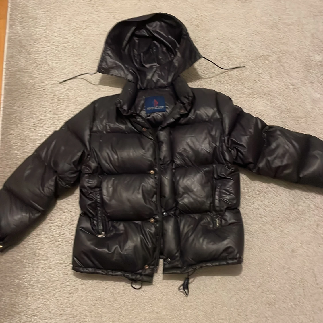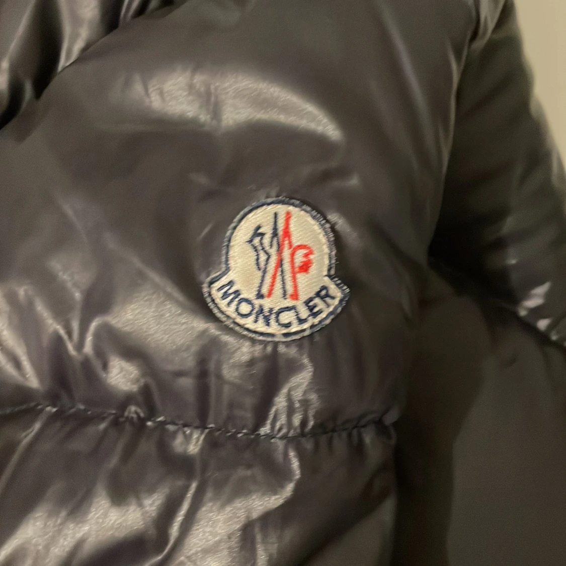 Säljer en snygg svart dunjacka från Moncler med huva och dragkedja. Jackan har en quiltad design och långa ärmar. Perfekt för kyliga dagar.