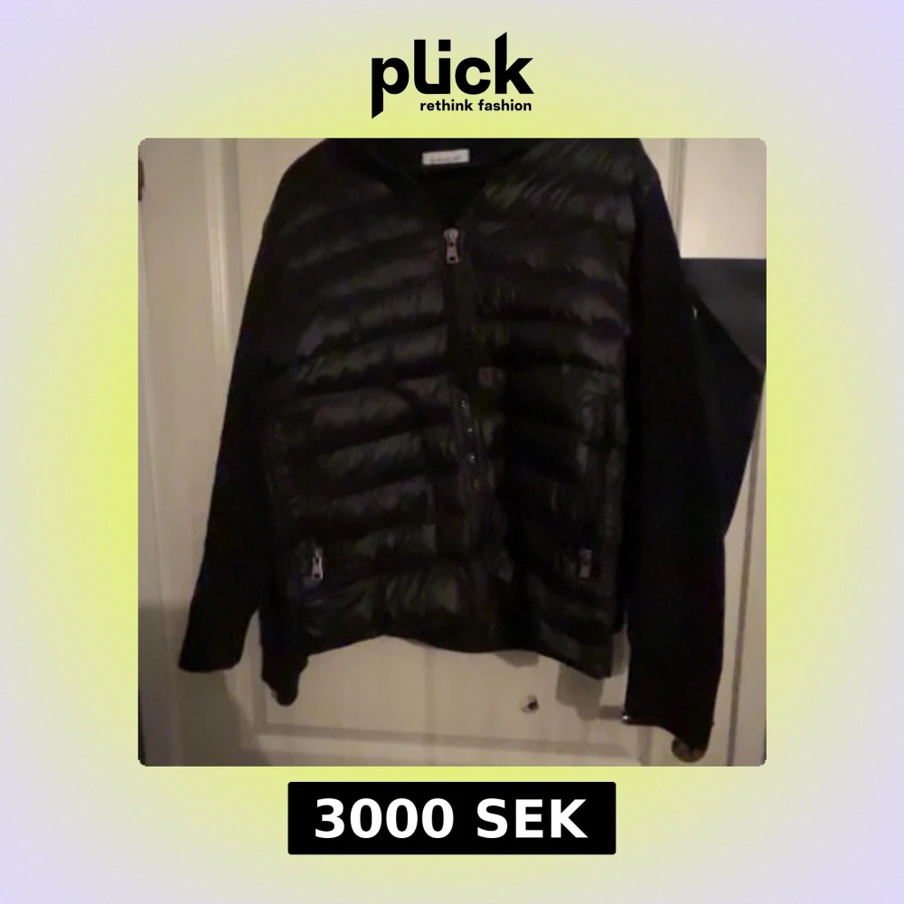 Säljer en snygg svart cardigan från Moncler med dragkedja och två fickor framtill. Jackan har en klassisk design med långärmade ärmar och Moncler-logga på armen. Perfekt för kyligare dagar.