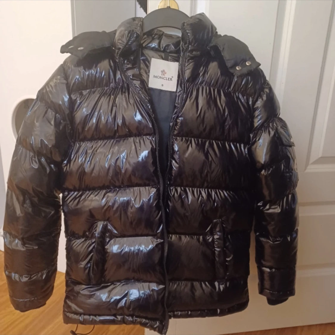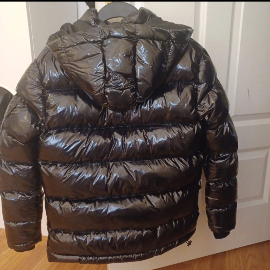 Snygg svart dunjacka från Moncler med glansig finish. Jackan har en dragkedja framtill och praktiska fickor. Perfekt för kyliga dagar med sin varma och puffiga design. Huvan ger extra skydd mot väder och vind.