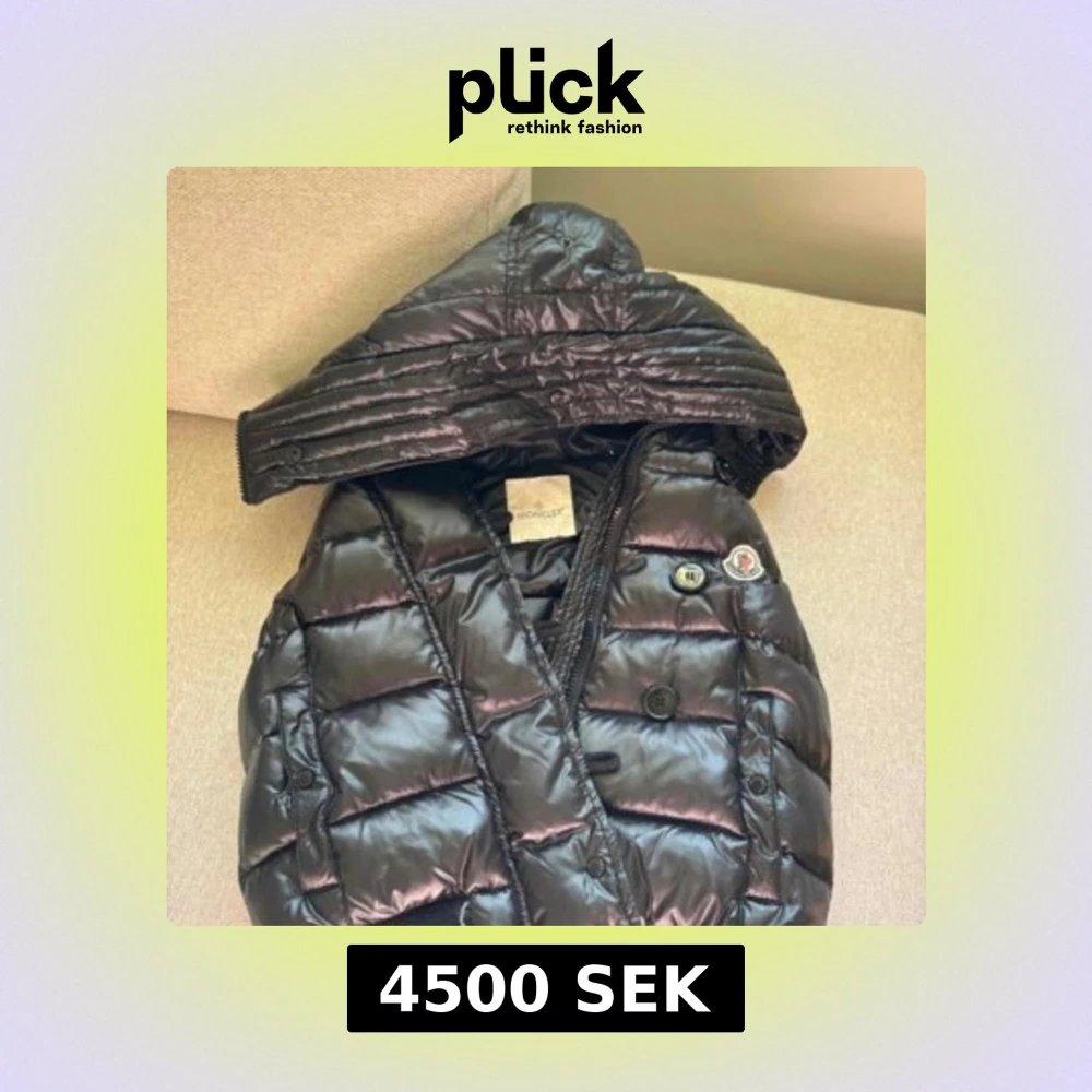 Säljer en svart, glansig dunjacka från Moncler med avtagbar huva och klassisk Moncler-logga på bröstet. Jackan har quiltad design, knappar och dragkedja framtill. Perfekt för kalla dagar och riktigt snygg streetstil.
