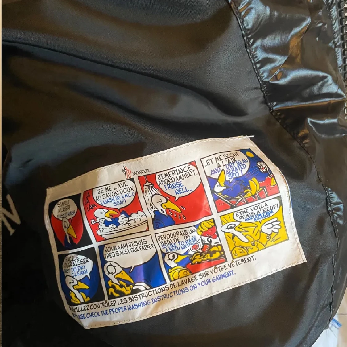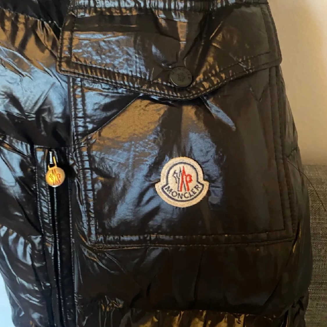 Säljer en snygg svart dunjacka från Moncler i mycket bra skick. Jackan är quiltad och har en glansig finish med dragkedja framtill. Den har långa ärmar och en broderad Moncler-logga på bröstet. Perfekt för kalla vinterdagar! 🖤