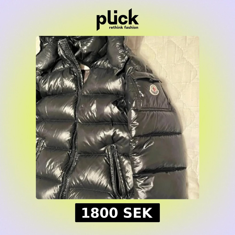 Säljer en svart, glansig dunjacka från Moncler med huva och dragkedja. Jackan har två snedställda fickor framtill och Moncler-logga på ärmen. Perfekt för kalla dagar och riktigt snygg streetstil. Pris kan diskuteras mini hål vid vänster hand,ingen nfc, trasig art