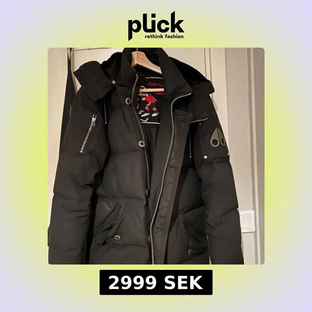 Säljer en svart dunjacka från Moose Knuckles med coola detaljer som dragkedjor och knappar. Jackan har en broderad insida med hockeymotiv och är perfekt för kalla dagar. Den har långa ärmar och en skön passform. Storlek M
