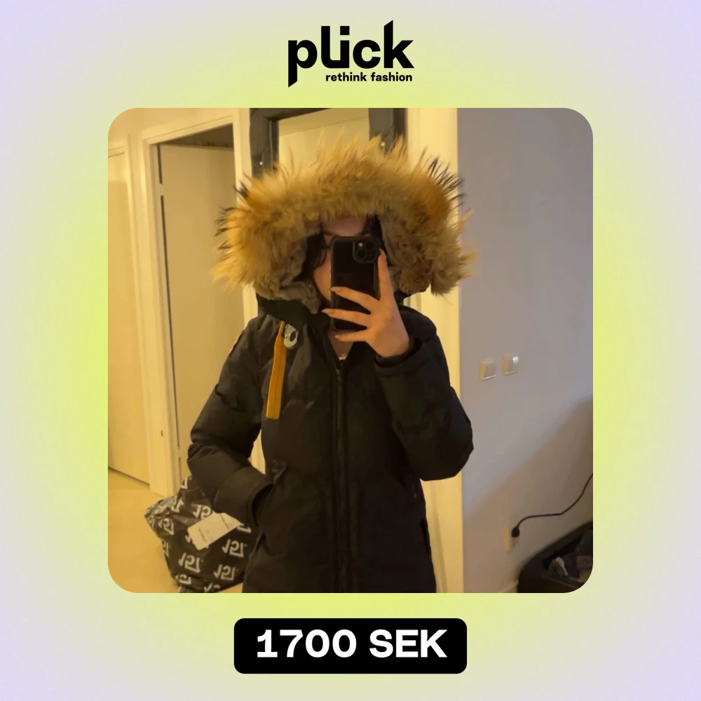 Säljer en svart dunjacka från Parajumpers med en stor, fluffig pälsfodrad huva. Jackan har en snygg gul dragkedja och en patch på ärmen. Perfekt för kalla vinterdagar! 🖤pris kan diskuteras