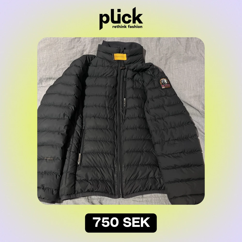 Säljer en svart dunjacka från Parajumpers med dragkedja och hög krage. Jackan har en broderad logotyp på ärmen och är superlätt. Perfekt för kyligare dagar. Passar en som är ungefär 160-165, jackan är äkta