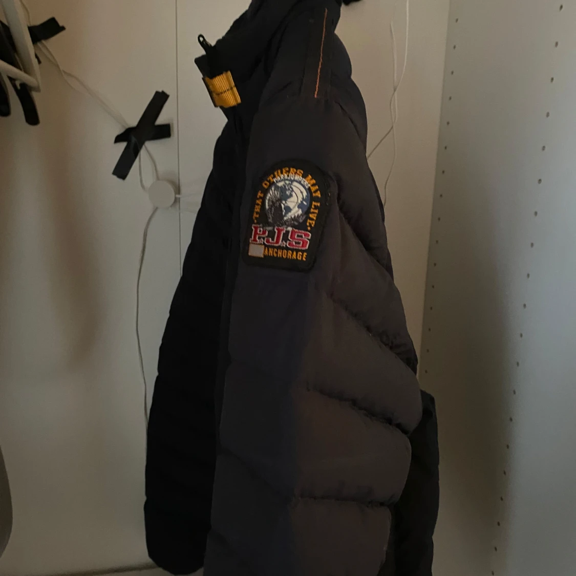 Säljer en marinblå jacka från Parajumpers. Perfekt för höst. Den är i bra skick, storleken är Y-M, skulle säga att de ungefär motsvarar storleken 164/170