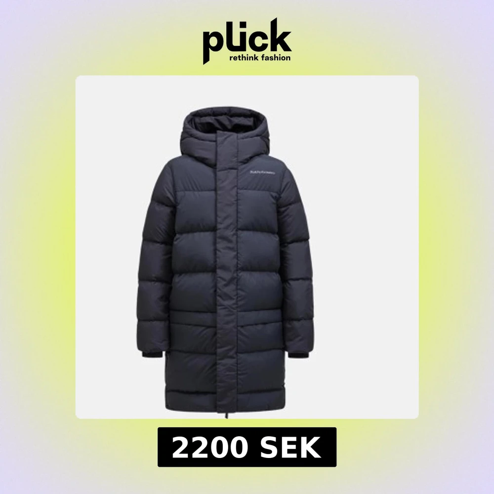 Säljer en stilren svart dunjacka från Peak Performance. Jackan har en lång passform med huva och dragkedja framtill. Perfekt för kalla vinterdagar med sin varma och vadderade design. Den har en liten brännskada på armen där jag lagt patches som jag fått från peak performance och det syns inte så mycket. Köpt på peak performance för 3800 i storlek 160 men passat mig som har S! Använd en vinter. Pris går att diskutera!