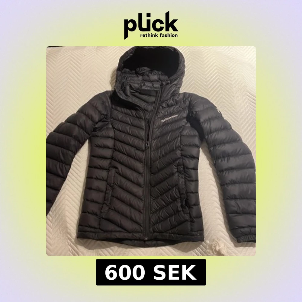 Snygg svart dunjacka från Peak Performance med huva och dragkedja. Perfekt för kyliga dagar med sin quiltade design som ger extra värme. Jackan har en stilren look och passar bra till både vardag och utomhusaktiviteter.