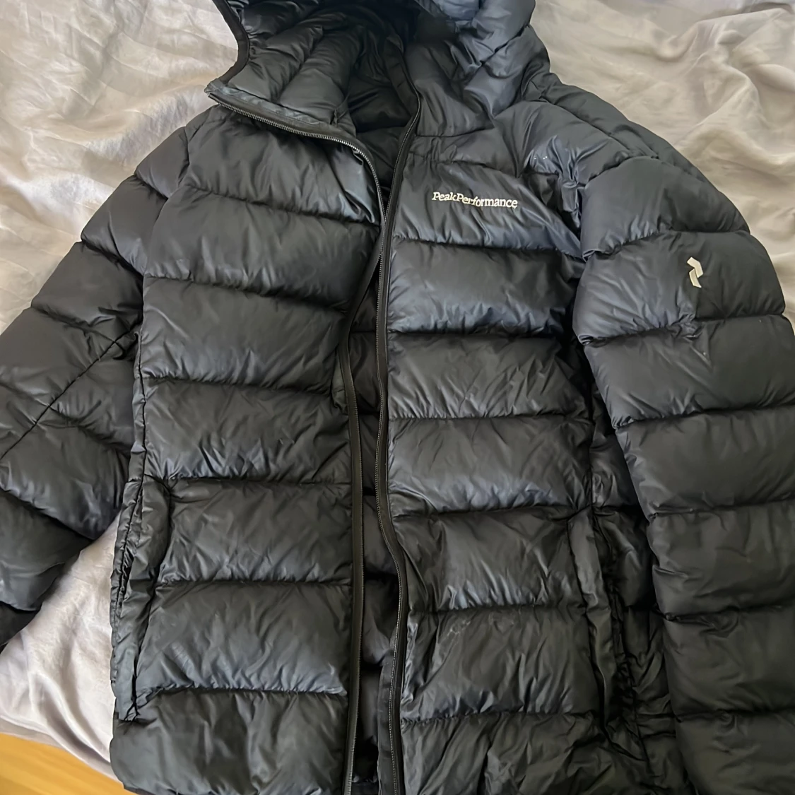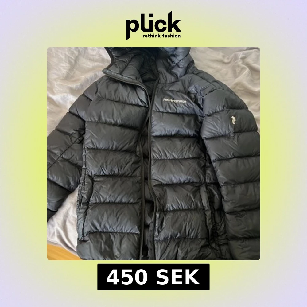 Säljer en svart dunjacka från Peak Performance. Jackan är perfekt för vår/höst. Säljs då den blivit för liten.