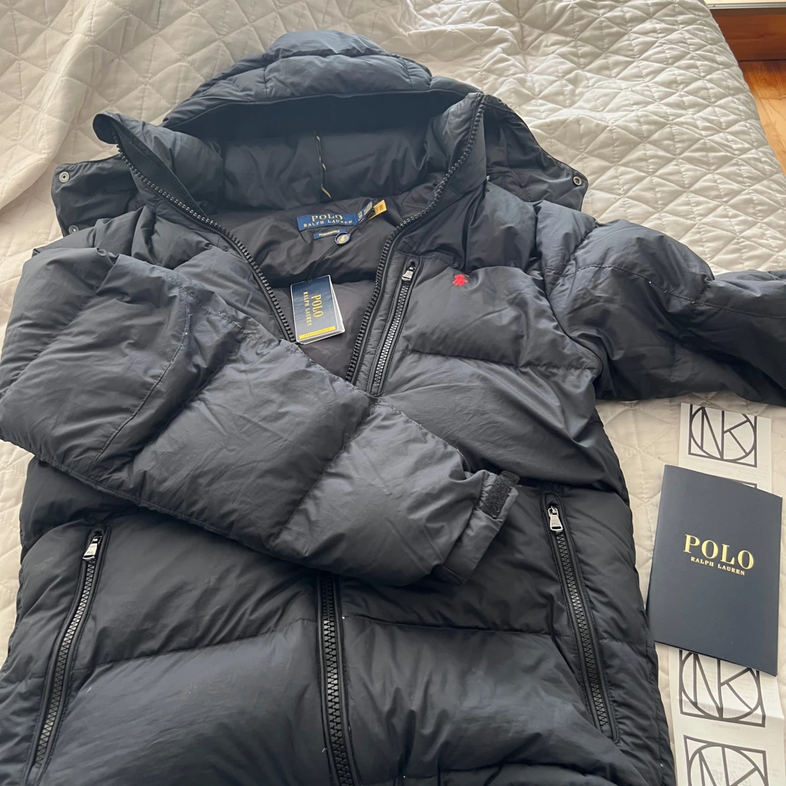 Säljer en svart dunjacka från Polo Ralph Lauren. Jackan har en praktisk dragkedja och är långärmad med en mysig huva. Skriv vid minsta funderingar, pris kan diskuterar inga skador på jakan säljer den då den är för stor och dags för en ny jacka.